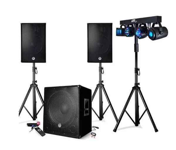 🎵 1 paire d’enceintes 1 700 W ou 2 400 W + trépieds